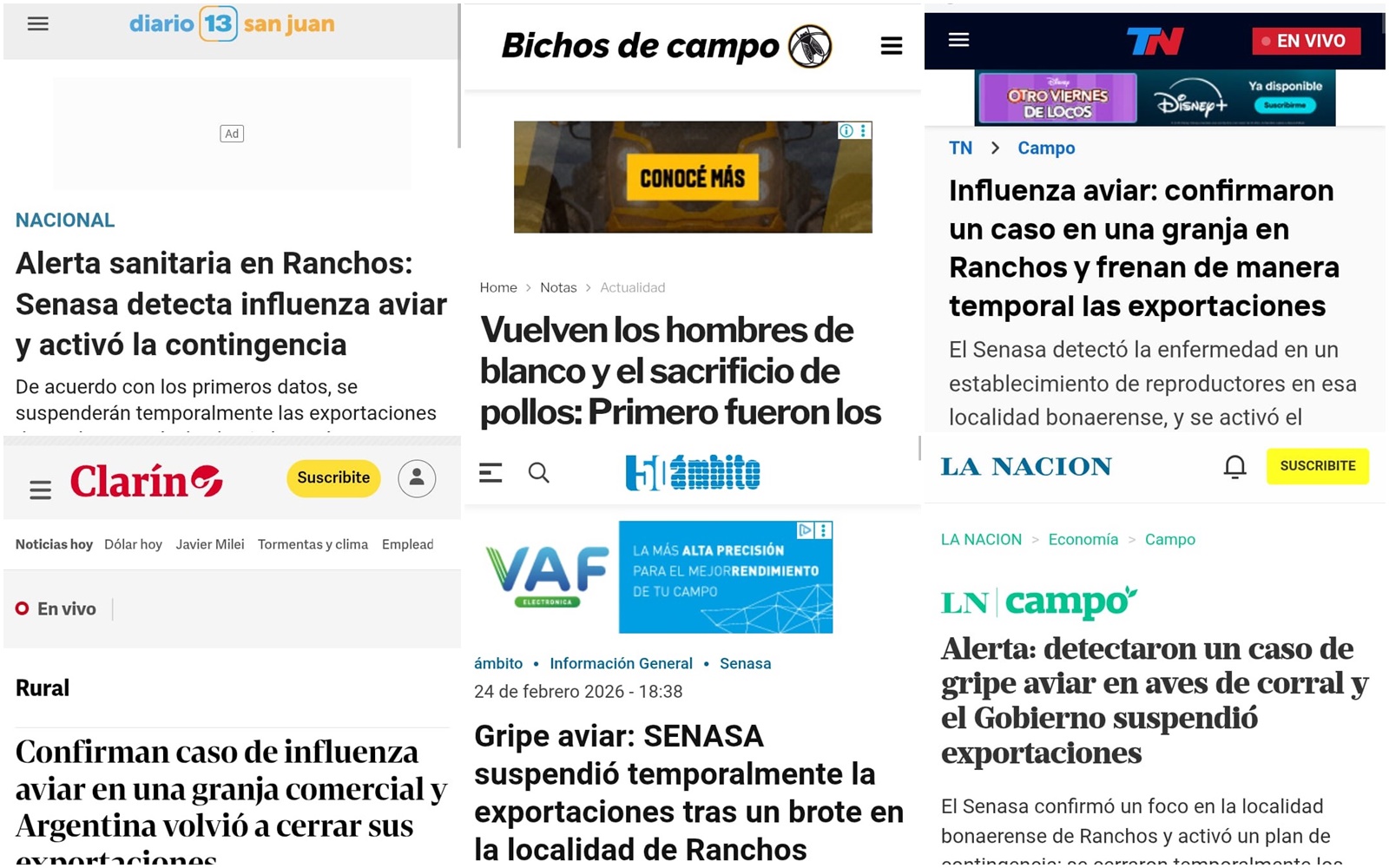 “Influenza aviar: Se confirmó un caso positivo en aves comerciales en Buenos Aires”, tituló el Servicio Nacional de Sanidad y Calidad Agroalimentaria (Senasa), aclarando que el hecho ocurrió en Ranchos, donde “el SENASA detectó un brote de la enfermedad en un establecimiento de línea genética y activó su plan de contingencia”.