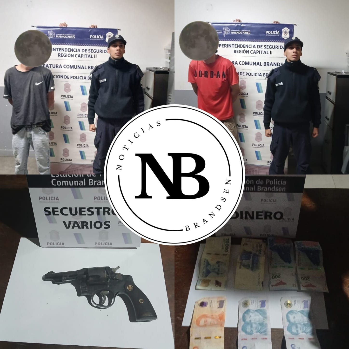 Tras un llamado al 911, la Policía en conjunto con G.T.O y SubDDI de Brandsen interceptaron el colectivo y aprehendieron a los sujetos. El joven de 24 años tenía el arma utilizada y el de 20 años dinero en efectivo y tres celulares.