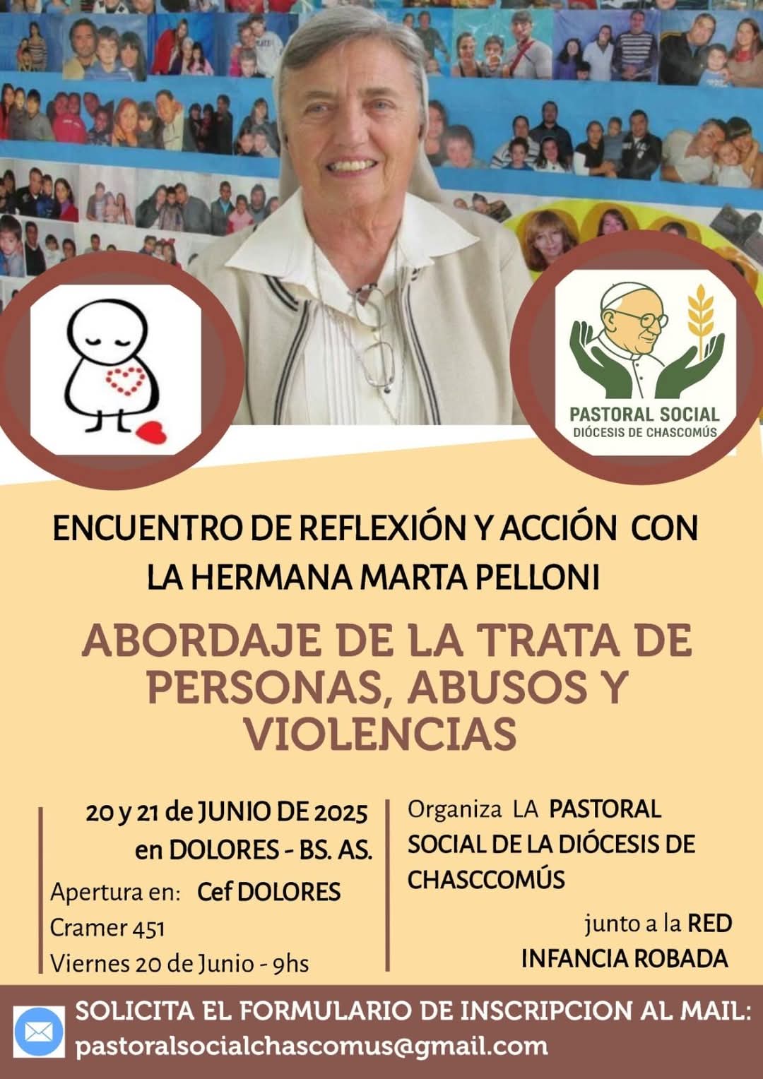 La Pastoral Social de Chascomús invita a instituciones, municipios, organizaciones, organismos, fundaciones, y personas en general, interesadas en la profundización de la temática sobre vulneración de derechos de las infancias y adolescencias, y el trabajo en red que la Hermana viene realizando y proponiendo en las comunidades, a participar de la formación en la Ciudad de Dolores (Cef- Cramer 451), Provincia de Buenos Aires.