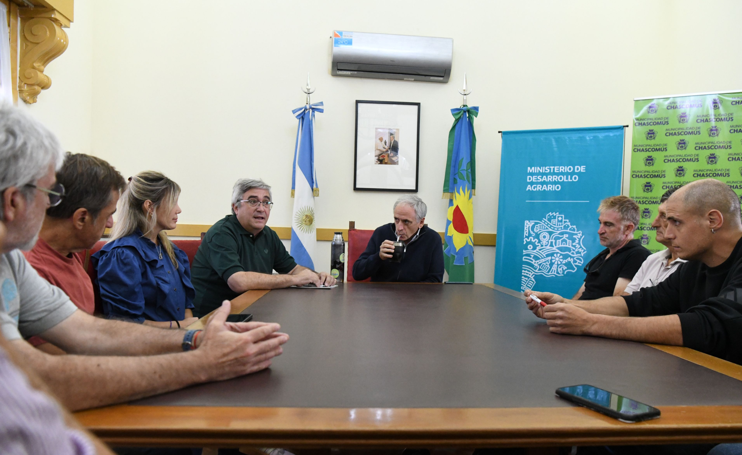 El ministro de Desarrollo Agrario de la provincia de Buenos Aires, Javier Rodríguez, presentó en Chascomús los lineamientos sobre el Plan Director de Caminos Rurales junto al intendente Javier Gastón, en un encuentro del que también participaron el presidente de la Asociación Rural local, Germán Pieroni, y productores del distrito.