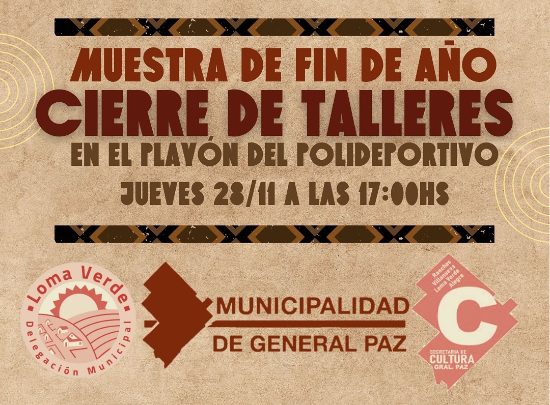 La Delegación de Loma Verde invita a participar de la Muestra de Cierre de los Talleres Culturales dependientes de la Municipalidad de General Paz.