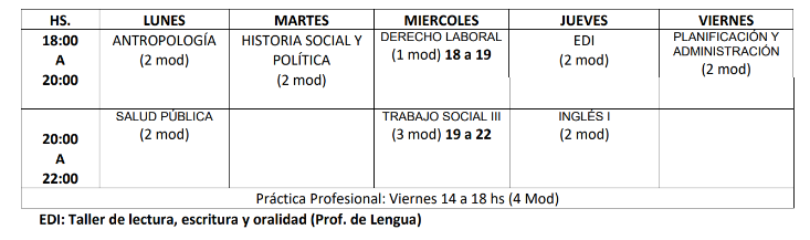 CARRERA: Tecnicatura Superior en Trabajo Social AÑO: 3°