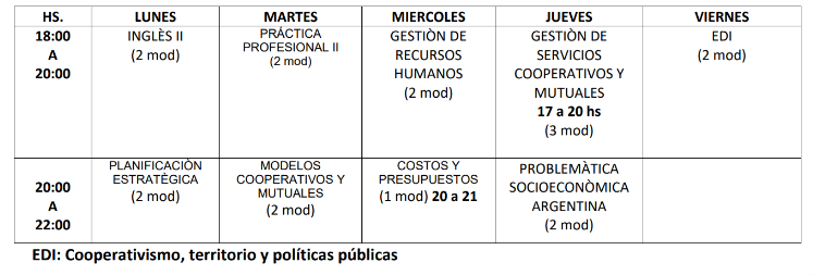 CARRERA: Tecnicatura Superior en Administración con orientación en Cooperativas y Mutuales AÑO: 3°