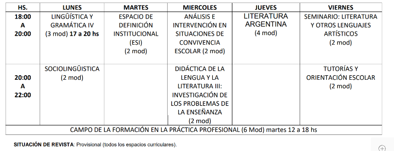 SITUACIÓN DE REVISTA: Provisional (todos los espacios curriculares).