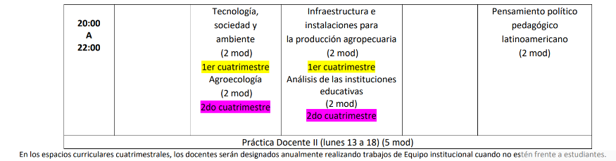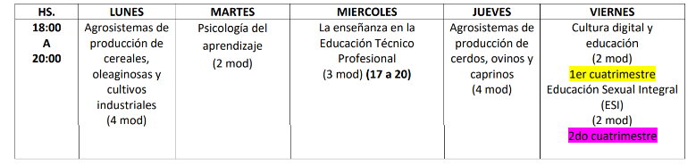 CARRERA: Profesorado de Educación Secundaria técnico profesional en producción Agraria – AÑO: 2°