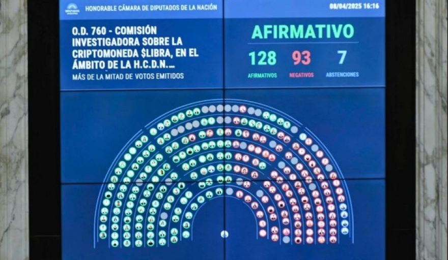 La Cámara de Diputados dio luz verde a la creación de una comisión investigadora sobre el escándalo relacionado con la criptomoneda $LIBRA. La iniciativa fue respaldada por 128 votos afirmativos, frente a 93 negativos y 7 abstenciones, marcando un nuevo revés para el oficialismo.