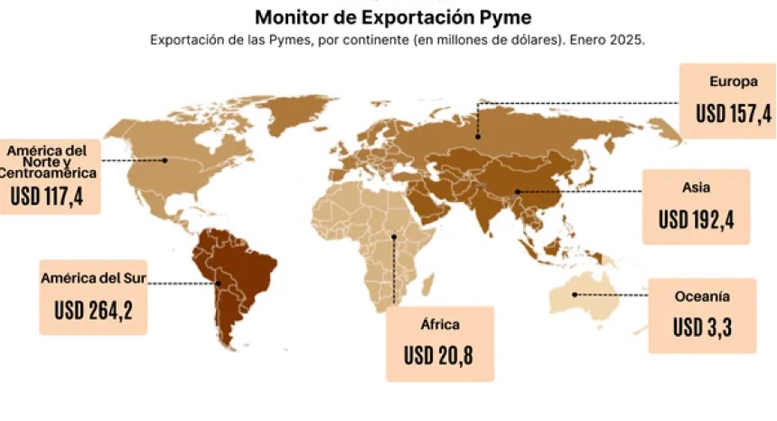Las exportaciones de las empresas pymes crecieron un 22,2%, alcanzando los USD 755 millones, lo que representa el 13,6% del total exportado por la República Argentina en el período enero 2025.