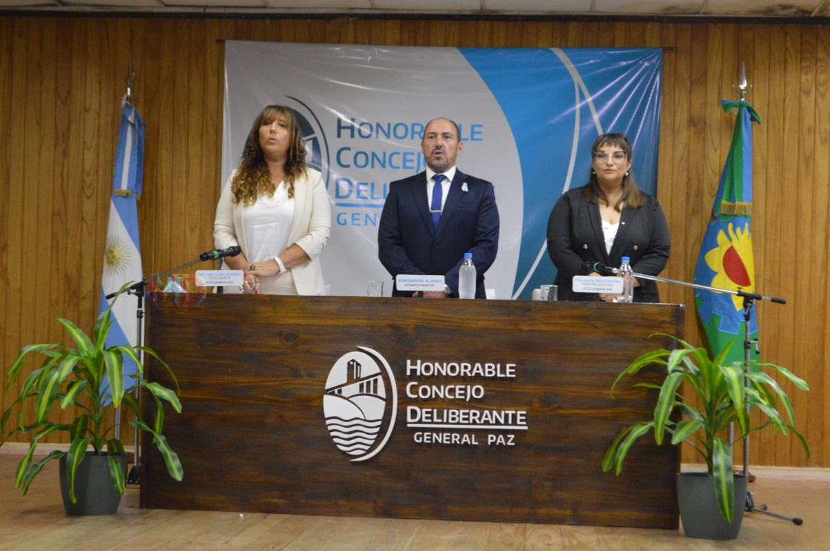 Con la presencia de la totalidad de los ediles, la Presidenta del cuerpo legislativo, Dra. Ana Clara Álvarez, dio inicio a la sesión, y se entonaron las estrofas del Himno Nacional Argentino, y luego siguió su alocución (Ver aparte).