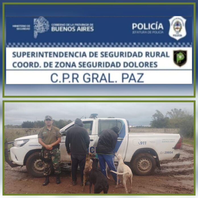 El Comando de Prevención Rural de General Paz procedió a la interceptación de dos personas mayores de edad, oriundos de esta localidad, quienes se encontraban realizando caza ilegal acompañados de 4 perros de la raza galgo.