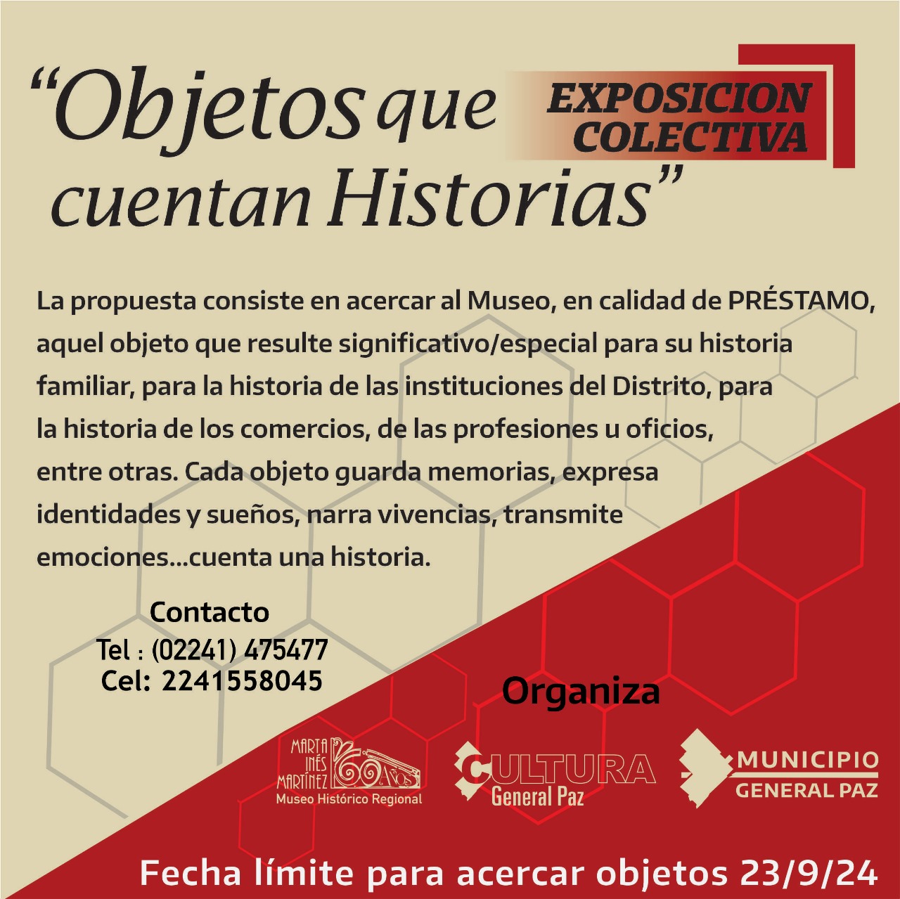 Comunícate al teléfono fijo 02241-475477 o al celular 2241558045 y formá parte de esta Expo Colectiva.
