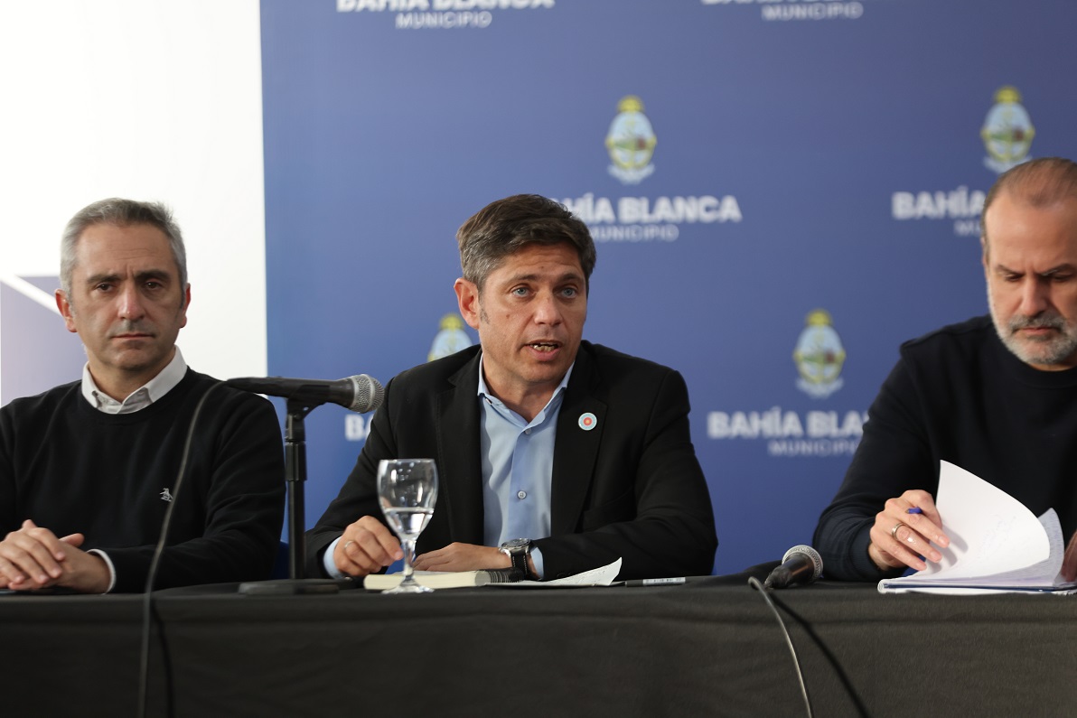 El gobernador Axel Kicillof anunció esta tarde una serie de medidas económicas y sociales para ayudar a todos los vecinos de Bahía Blanca, luego del trágico temporal del pasado viernes.