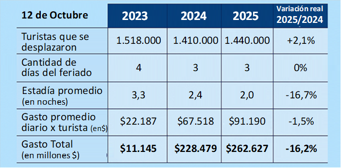 Fuente: datos de CAME de los fines de semana largo de 2025