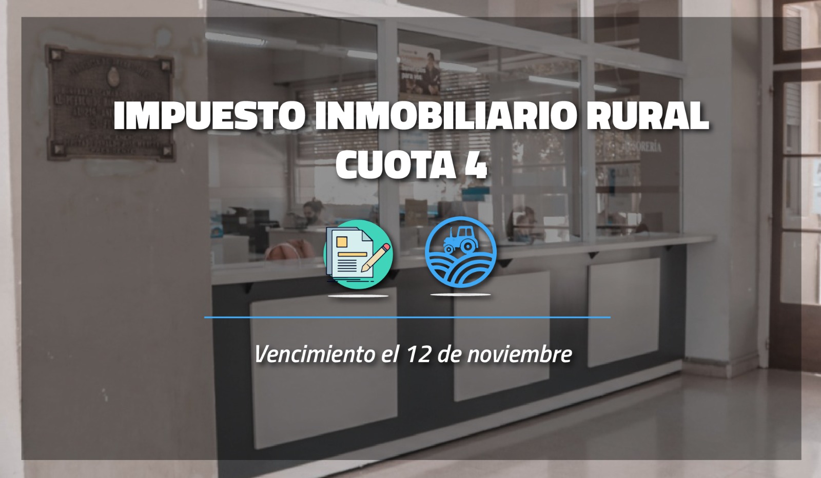 La Dirección de Ingresos Públicos de la Municipalidad de General Paz informa que se encuentran disponibles para retirar las boletas de la cuota 4/2024 del impuesto inmobiliario rural de Arba, con fecha de vencimiento el 11 de noviembre.