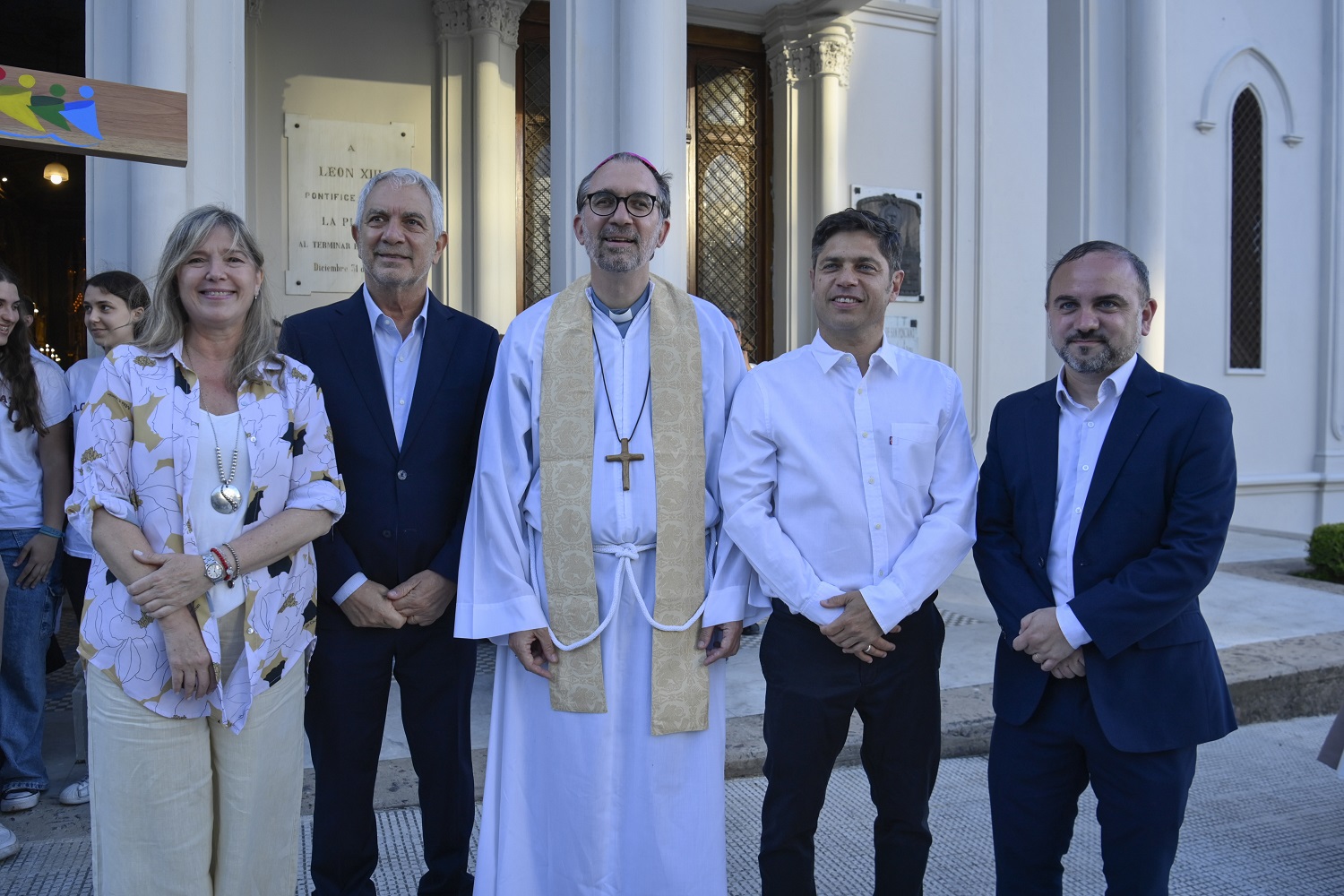 El gobernador de la provincia de Buenos Aires, Axel Kicillof, participó este sábado de la ceremonia de asunción del nuevo arzobispo de la Arquidiócesis de La Plata, Gustavo Oscar Carrara, frente al Santuario Arquidiocesano de María y todos los Santos, la Basílica y Parroquia San Ponciano.