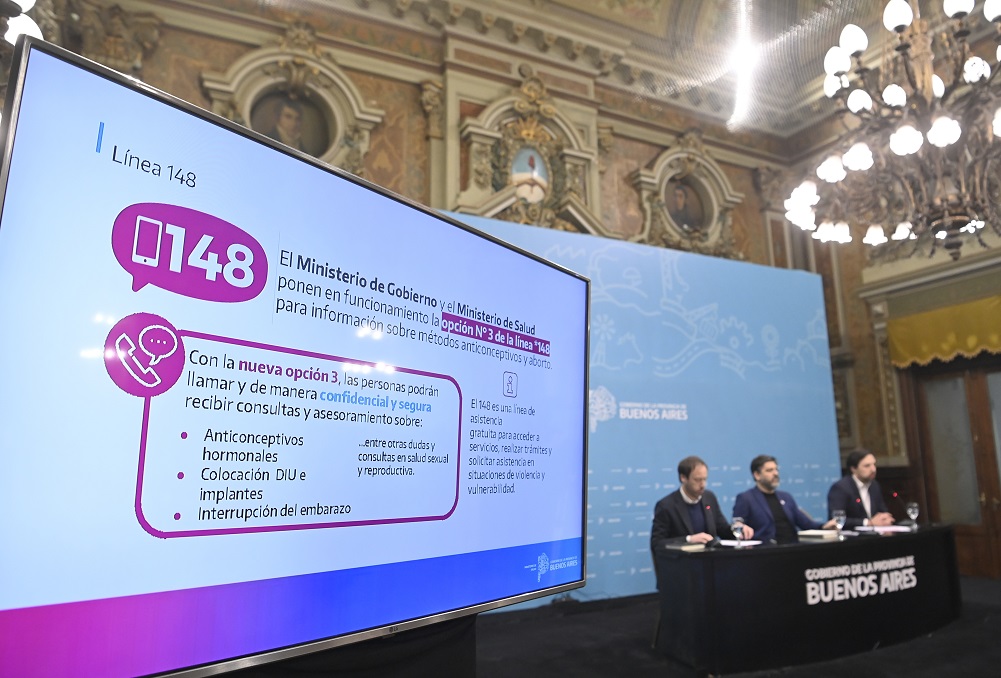 Entre los anuncios realizados, Kreplak indicó que Ministerio de Salud y el Ministerio de Gobierno ponen en funcionamiento la opción N°3 de la línea 148 para información y asesoramiento confidencial sobre métodos anticonceptivos, colocación de DIU, interrupción del embarazo y otras consultas de salud sexual y reproductiva.