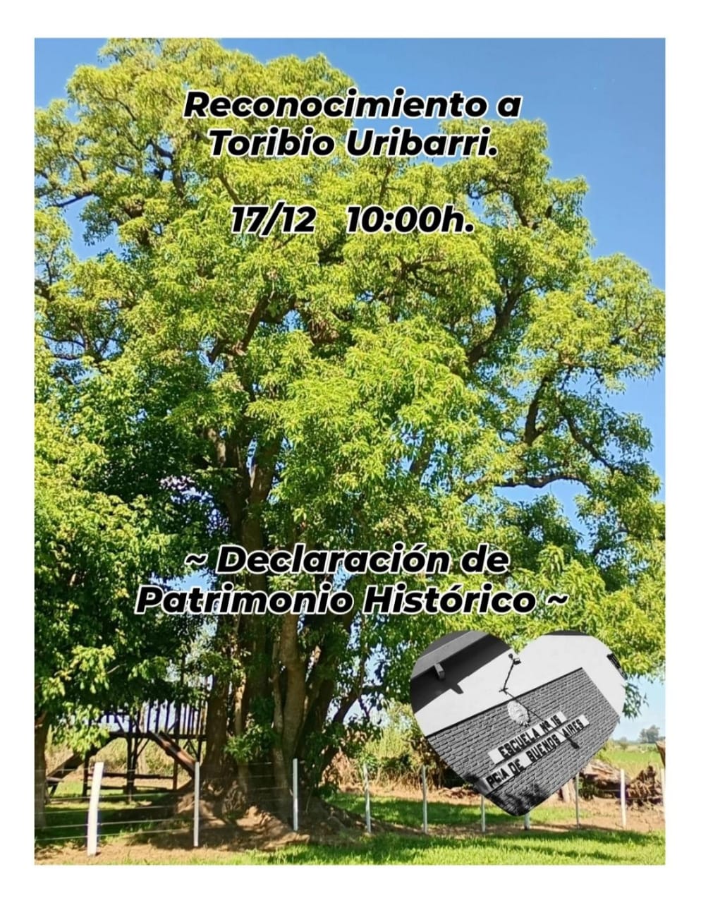 Este martes 17, a las 10 horas se realizará el descubrimiento de la placa en reconocimiento a Toribio Uribarri, quien fue el donante de las tierras para la construcción del edificio en el cual hoy se encuentra emplazada la institución educativa, y el cual además se ocupó de forestar el predio.