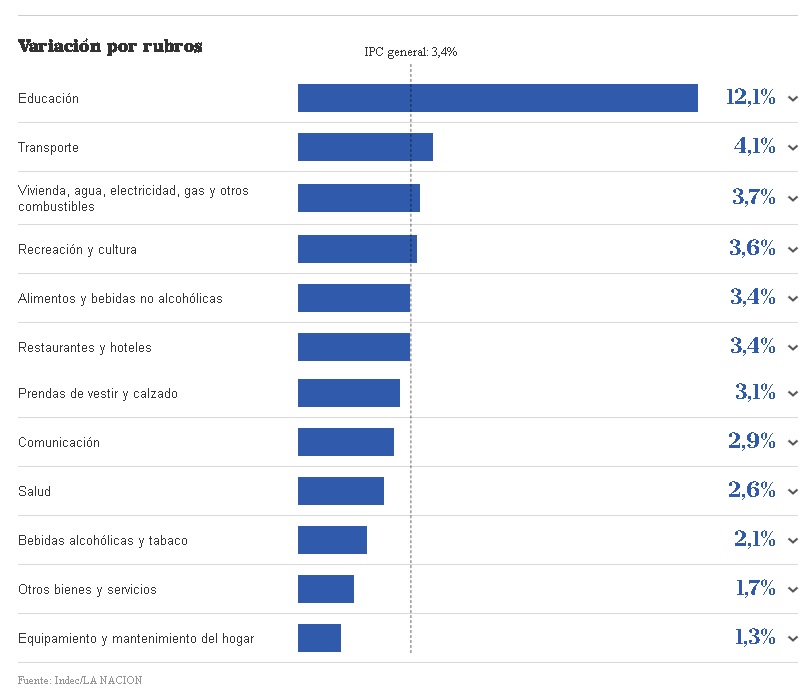 El mes pasado sufrió el impacto de la suba de los combustibles derivada del conflicto que inició el presidente de los Estados Unidos, Donald Trump, en Medio Oriente; el de la decisión oficial de impulsar el precio de las tarifas por arriba de la inflación; y, según el diagnóstico del propio Gobierno, el efecto inercial que el movimiento del tipo de cambio tuvo derivado de la significativa dolarización de carteras el año pasado en medio del proceso electoral de mitad de término. También se le sumó, como todos los marzos (inicio de clases), el impacto estacional de la Educación.