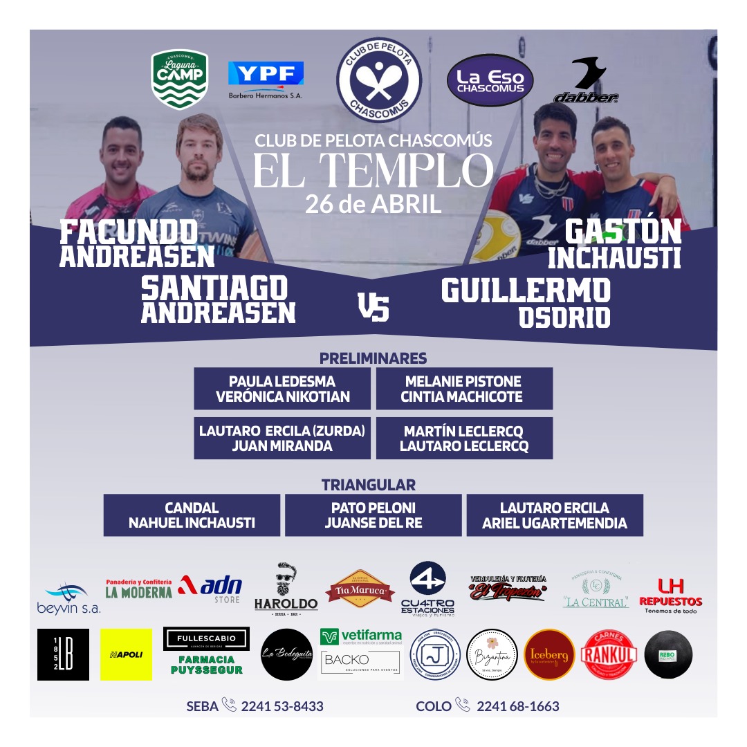 La mejor paleta del mundo vuelve al trinquete del Club de Pelota Chascomús el viernes 26 de abril, cuando, desde media tarde, El Templo albergará una jornada imperdible para todos los amantes del deporte vasco.