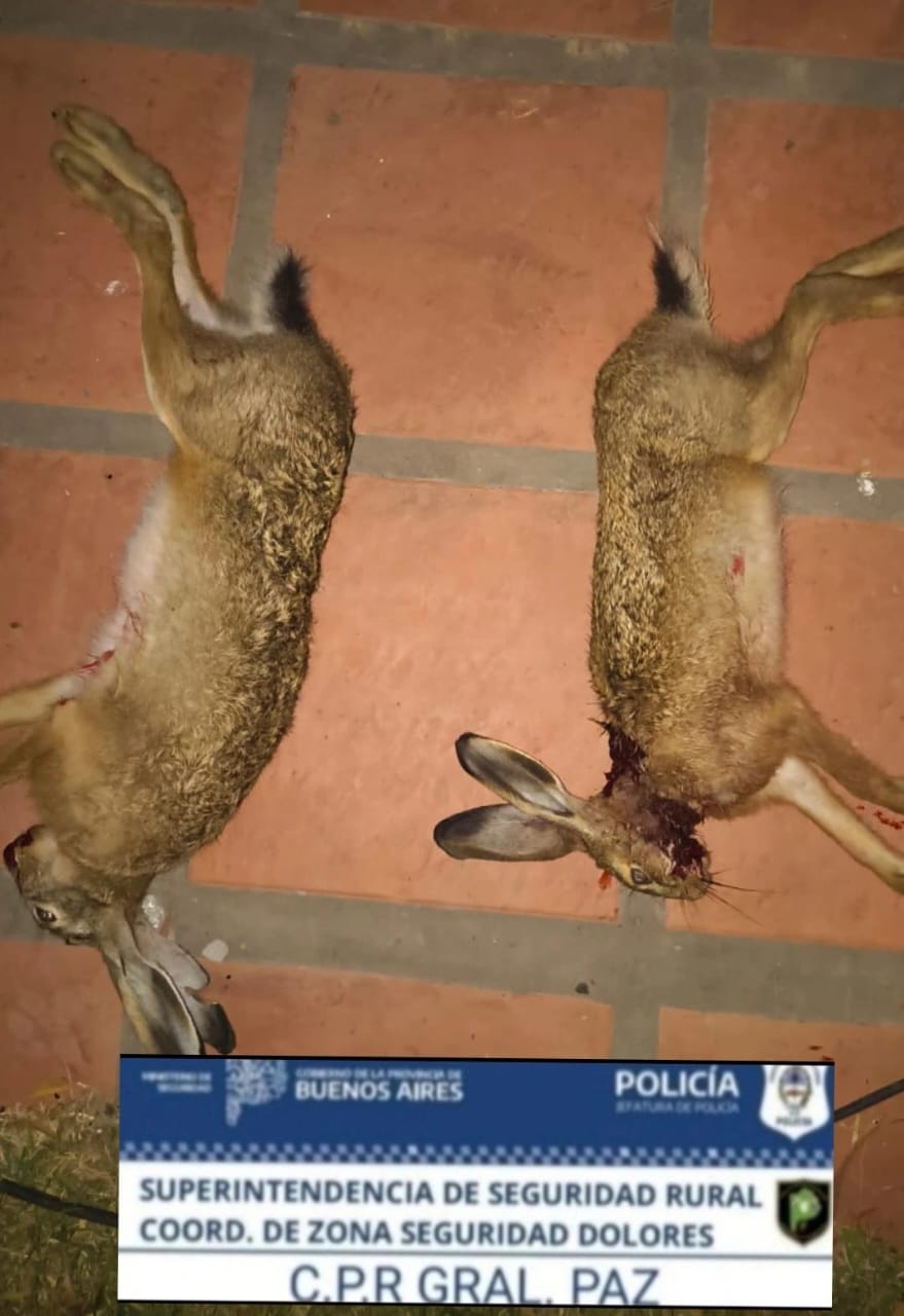 El Comando de Prevención Rural de Gral. Paz detuvo a dos hombres mayores de edad oriundos de la localidad vecina de Brandsen, los cuales se encontraban realizando caza ilegal, con aires comprimidos, en un campo de la zona. junto a ellos, encontraron ejemplares de liebre sin vida.