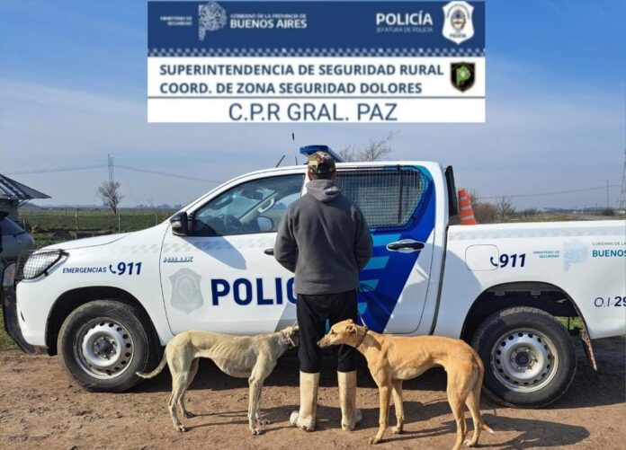 En momentos que personal policial de este elemento se encontraba en recorrida de prevención del delito en todas sus gamas, el Comando de Prevención Rural de Gral. Paz procedió a la interceptación de dos personas de sexo masculino, quienes se encontraban realizando caza ilegal a campo abierto acompañados de tres canes simil raza galgo.