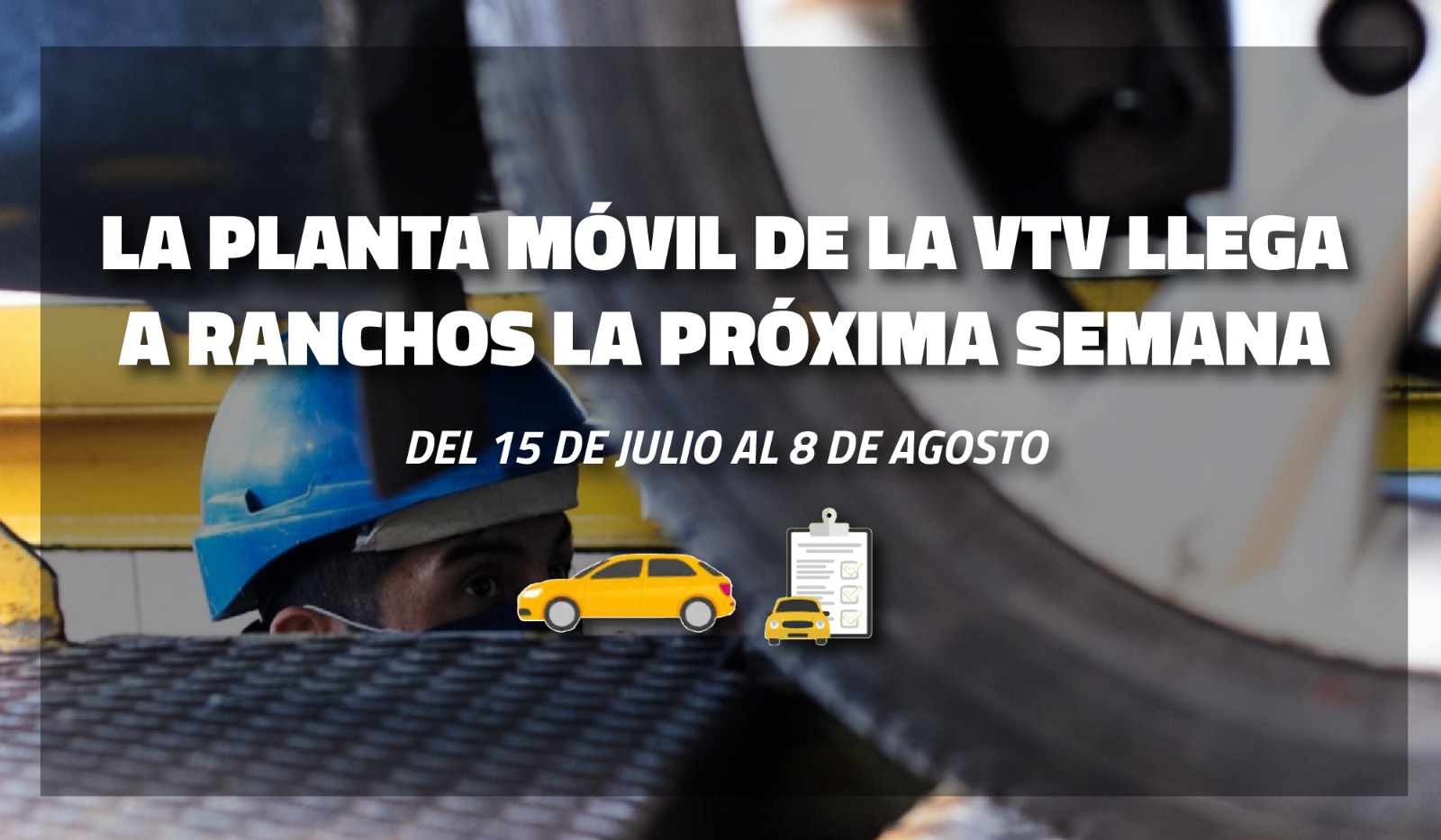 A partir del próximo lunes 15 de julio y hasta el jueves 8 de agosto, la planta móvil de Verificación Técnica Vehicular llega a Ranchos y se instalará en la calle España entre Ameghino y Avenida Campomar, frente al Centro de Educación Física.