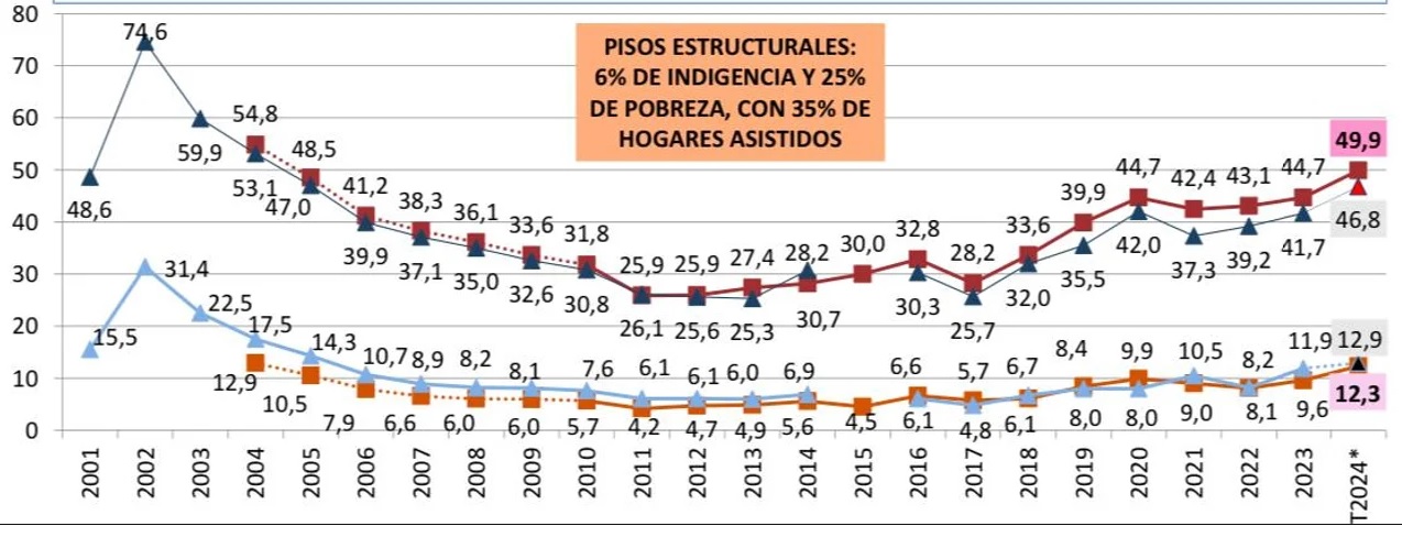 Entre 2022-2023-2024 aumentó la proporción de personas en situación de indigencia y pobreza.