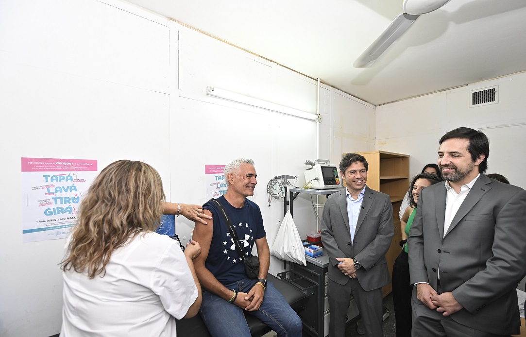 El gobernador Axel Kicillof encabezó este martes en el Hospital “Rodolfo Rossi” de la ciudad de La Plata el inicio de la campaña provincial de vacunación contra el dengue, junto al ministro de Salud, Nicolás Kreplak; el intendente Julio Alak; y la directora ejecutiva de la institución, Cecilia Jaschek.