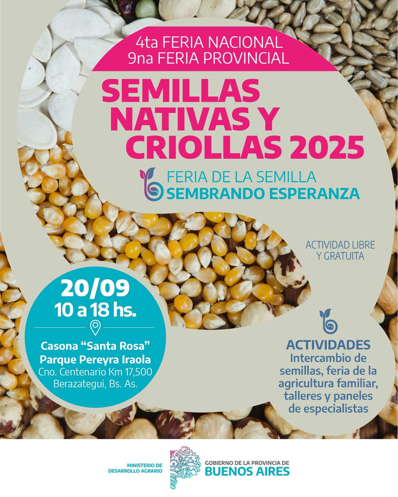 El sábado 20 de septiembre se realizará en la Casona Santa Rosa de la Reserva de Biósfera Parque Pereyra Iraola la 4ta Feria Nacional y 9na Provincial de Semillas Nativas y Criollas «Sembrando Esperanza», con intercambio, paneles, talleres, música y actividades abiertas.