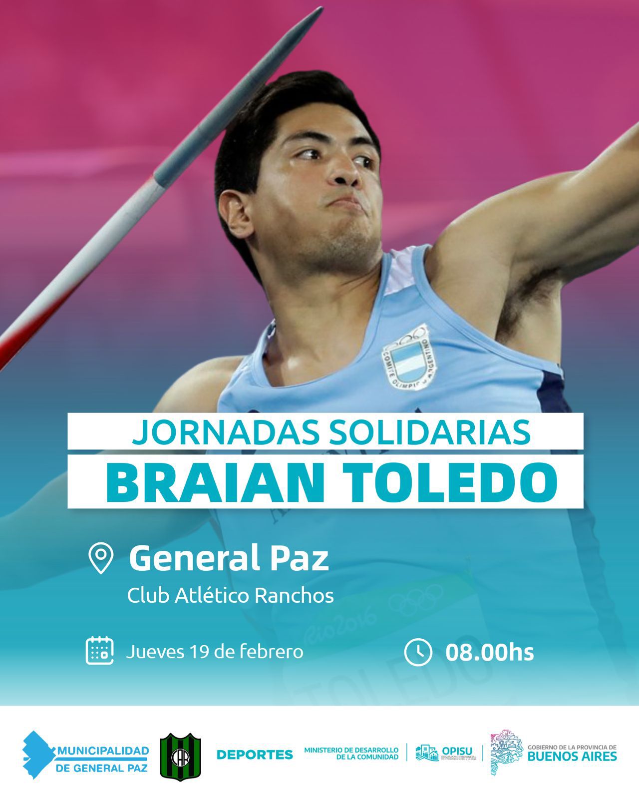 Las jornadas llevan el nombre de Braian Toledo, en homenaje al atleta nacido en Marcos Paz, especialista en lanzamiento de jabalina, medallista en torneos mundiales y panamericanos, y representante argentino en los Juegos Olímpicos de Londres 2012 y Río de Janeiro 2016, donde alcanzó la final. Toledo falleció en un accidente de tránsito el 27 de febrero de 2020, y su figura se transformó en un símbolo del deporte social y del esfuerzo juvenil.
