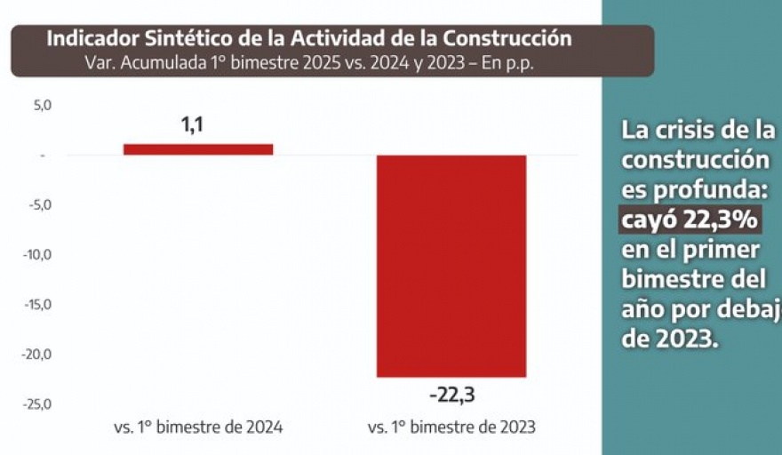 El funcionario provincial atribuyó esta contracción principalmente a la paralización de la obra pública nacional, una medida que, según afirmó, ha tenido un impacto decisivo en el desplome del sector.