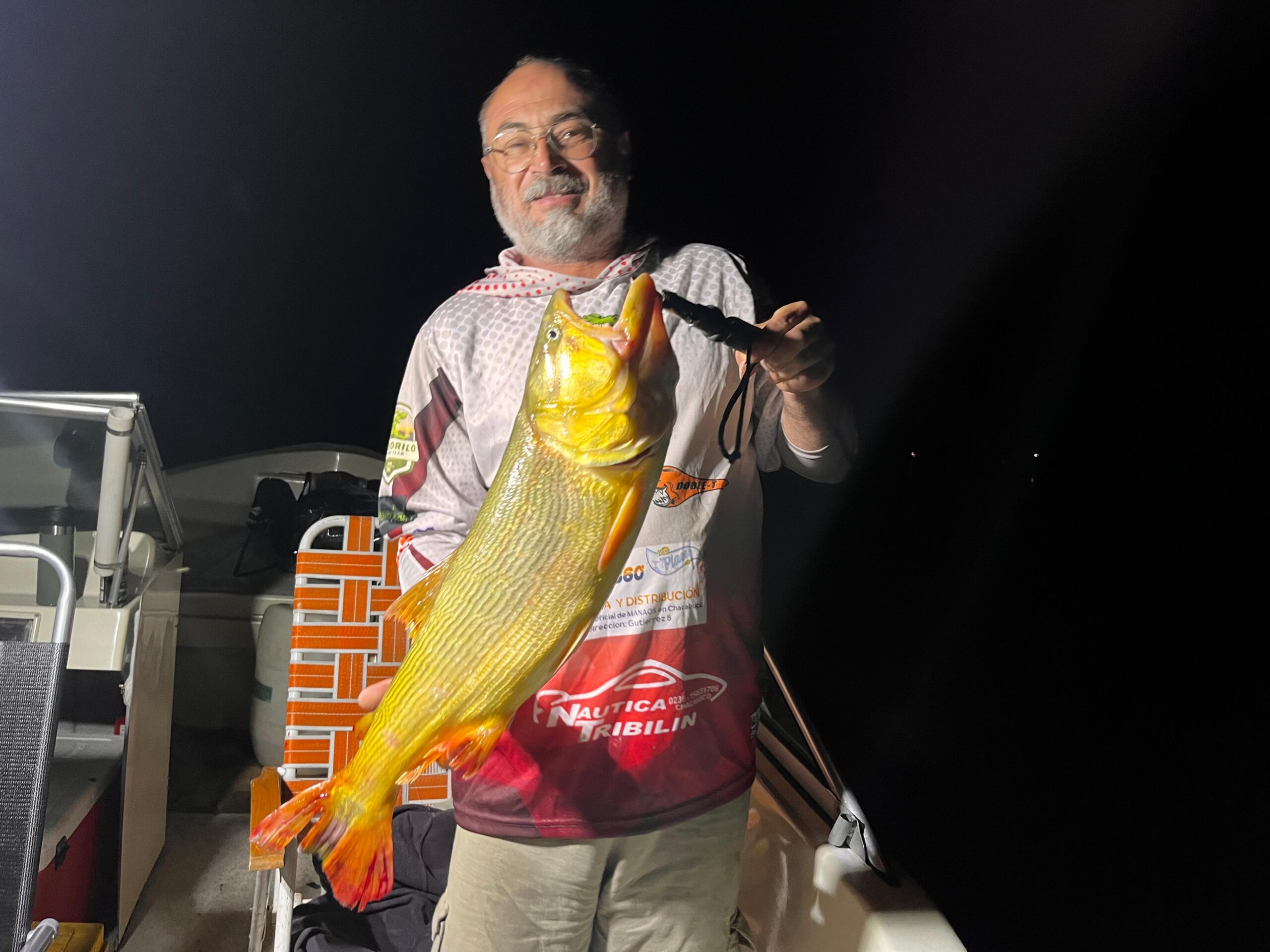 Luego Roberto sacó un buen dorado de 4 kilos, otro Enzo, dos más Sebastián; un lindo Pati de unos 3 kilos logro Enzo y así durante unas horas, hasta que el cansancio los venció, y tanto Roberto como Sebastián, se durmieron en la embarcación, mientras tanto Enzo siguió pescando hasta el amanecer con similares resultados: muy buenos dorados, que oscilaron entre 2 y 4,5 kilogramos.