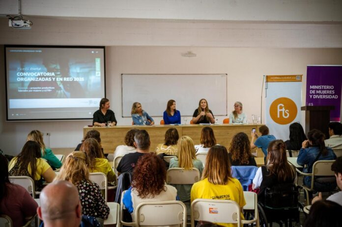 La Ministra de Mujeres y Diversidad, Estela Díaz, junto a la subsecretaria Legal, Técnica y Administrativa, Mercedes Castilla y a la decana de la Facultad de Trabajo Social de la UNLP, Alejandra Wagner, realizaron el lanzamiento de la Convocatoria «Organizadas y en Red 2025», una política destinada a proyectos productivos y de servicios liderados por mujeres y LGTBI+.