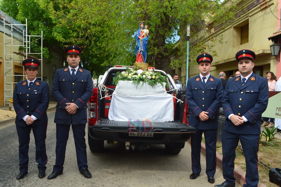 No obstante, implorando la protección de la Santísima Virgen del Pilar, la comunidad eclesiástica, junto a los creyentes se congregaron en las puertas del Museo Histórico Regional “Marta I. Martínez” para volver en peregrinación con la imagen de la Virgen hacia la parroquia, bajo la custodia de los Bomberos Voluntarios, tal la tradición que se conserva en nuestro pueblo.