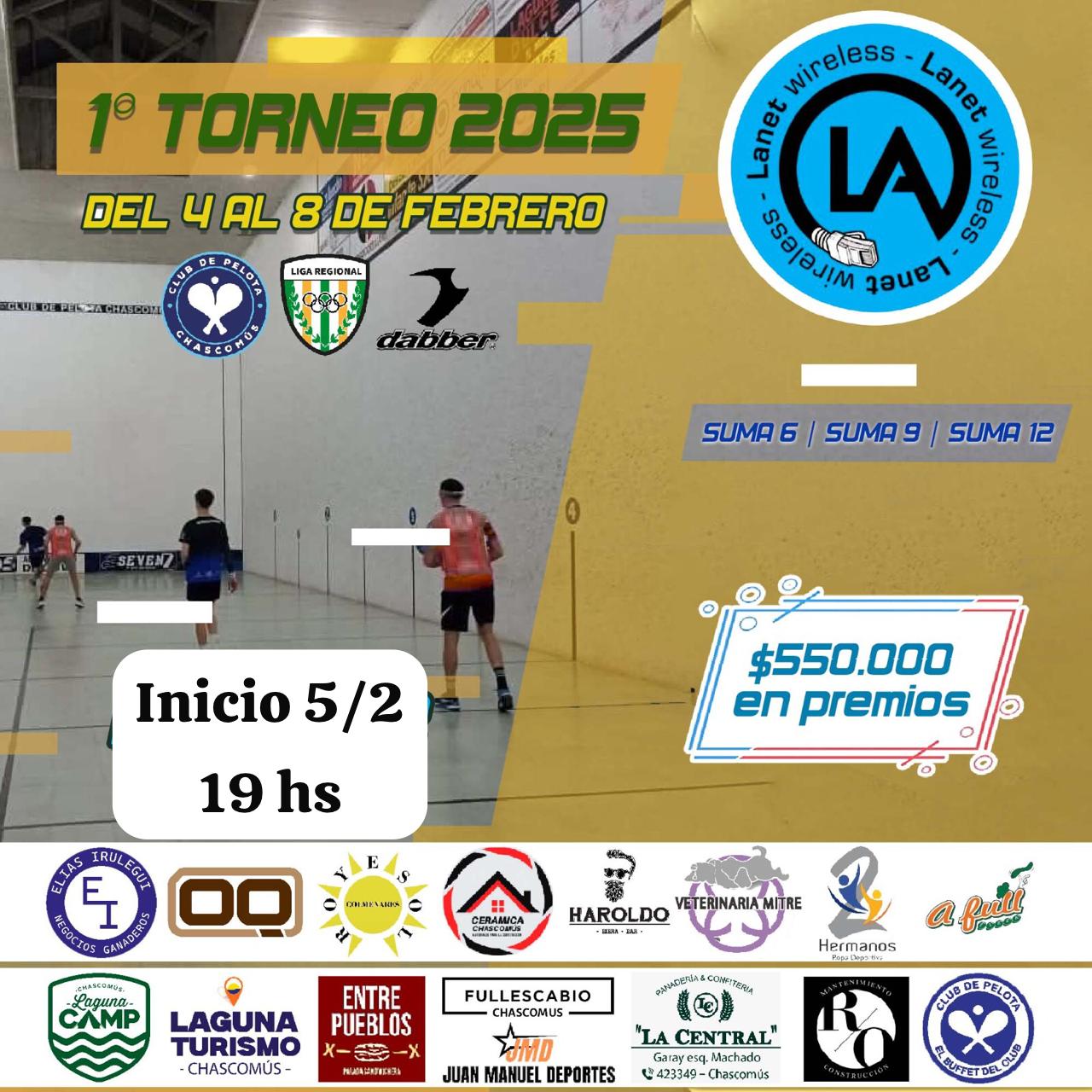 El “La Net Wireless”, es un evento que repartirá $ 550.000 en premio, y en poco más de dos horas fueron 31 parejas inscriptas, con pelotaris de Lezama, Castelli, San Miguel del Monte, Ranchos, La Plata y Chascomús.